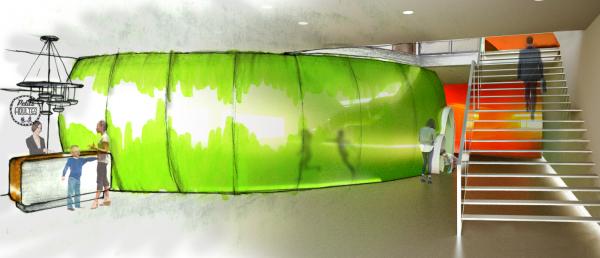 Cette boutique propose deux types d’ambiance : à la fois ludique, dynamique et divertissante pour les enfants qui sont dans la liberté totale à l’intérieur de la boutique, mais aussi posée et apaisante dans l'espace café afin d’accommoder les parents pendant que les petits adultes font leur magasinage. Une nouvelle façon de vivre l'expérience d'une boutique à travers les yeux des enfants.