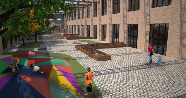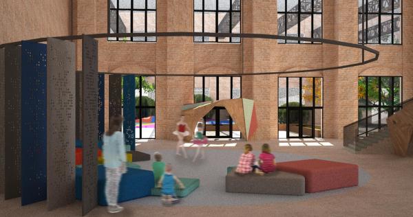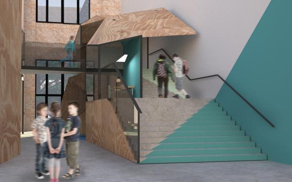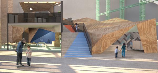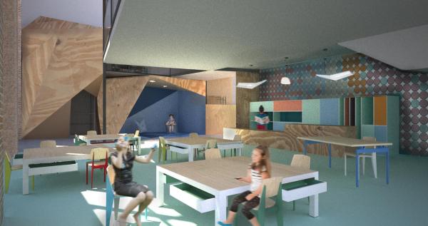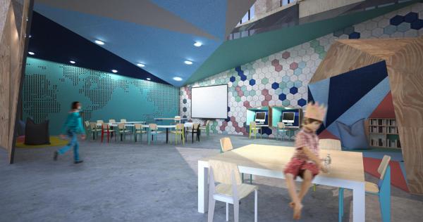 Ce projet d’école primaire alternative se situe dans une ancienne usine de locomotives. L’apprentissage y commence dès l’extérieur, dans la cour verte et les jardins. Le hall d’entrée sert également d’auditorium et d’espace de performance. Viennent ensuite les aires publiques, les toilettes et les casiers, suivis de l’atelier d’arts plastiques, d’une classe magistrale, d’une serre et d’un vivarium qui tiennent lieu d’atelier de sciences. Tous les espaces sont à des niveaux différents afin de travailler à l’échelle de l’enfant. Ainsi, l’école devient comme un terrain de jeu, un espace propice à l’ouverture et à la créativité.