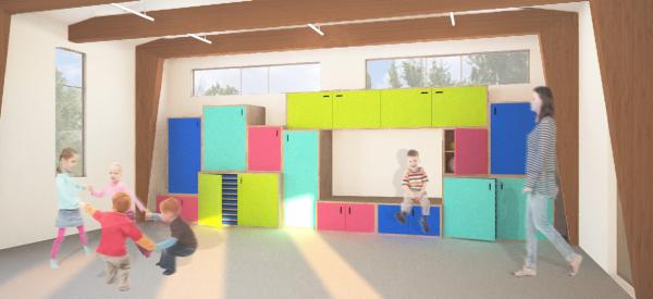 Cet espace se distingue par la flexibilité de ses installations ainsi que son concept hors du commun. Le lieu en soi est perçu comme une expérience, car il donne l’impression aux enfants qu’ils s’aventurent dans un autre univers. Chaque tâche que l’enfant doit effectuer devient un moyen de le stimuler et de lui procurer un sentiment de liberté.