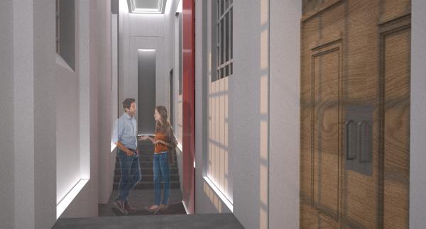 L’expérience dans ce lieu se veut immersive dans le monde de la théâtralité. Mettant à l’avant-plan l’usager, comme sous les feux de la rampe, l’espace s’inspire de la relation entre le comédien et son expérience sur scène. Éclairage, atmosphère, costume et mouvement s’entrelacent pour créer l’instant parfait entre le créateur et son public.
