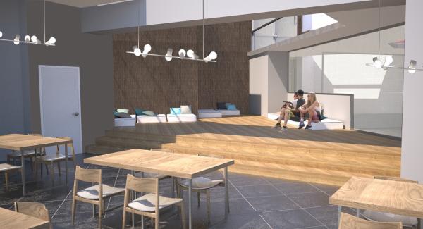 Servant de parcours entre l’ancienne et la nouvelle sections de l’école, le hall et le café des étudiants avaient grand besoin d’être réaménagés. Jouant plusieurs rôles dans le bâtiment, ces espaces polyvalents ont été conçus afin de servir de lieu d’échange, d’attente, de restauration et d’étude en plus d’être propices aux élans de création.