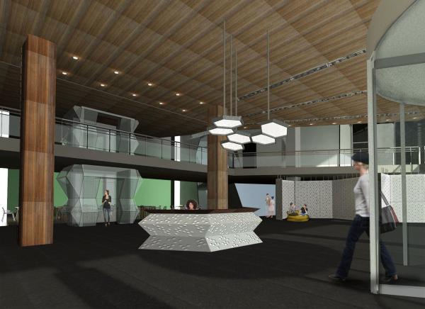 Le centre comprend trois étages. Dès l'entrée, le visiteur fait face à des formes déconstructivistes grâce à un ascenseur en verre formé d'hexagones. Il poursuivra son parcours jusqu'au café où un jeu de transparence/opacité est créé. En montant à l'étage, des formes étirées représentent différentes salles de formations immersives où l'apprentissage sera ludique. La salle de spectacle perchée au sommet symbolise alors les connaissances acquises tout au long du parcours. Réflexions, projections, vibrations et ambiance feutrée souligneront la particularité de cet environnement. **