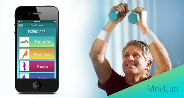 MovUup est un ensemble de deux bracelets intelligents connectés à une application, qui permet au physiothérapeute de faire un suivi précis et personnalisé à distance des exercices de réadaptation des membres inférieurs et supérieurs d’un patient hospitalisé. MovUup a pour objectif de motiver les patients immobilisés sur leur lit d’hôpital à stimuler leurs muscles afin d’accélérer leur retour à la maison. Il réduit ainsi les risques de prolongation du séjour hospitalier liés à l’immobilité musculaire. Au moyen d’un physiothérapeute virtuel, MovUup permet d’agrémenter l’expérience usager tout en lui offrant une possibilité de suivi après sa sortie d’hôpital.