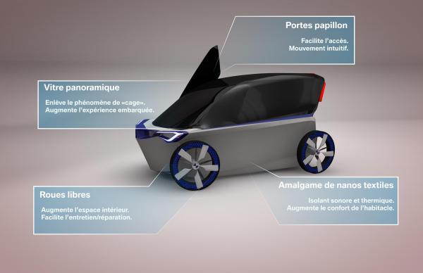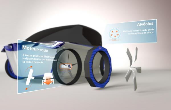 Muni de quatre moteurs-roues indépendants, le véhicule électrique à deux places se déplace avec aisance dans le centre-ville des mégapoles. Son châssis universel en H lui donne une grande polyvalence d’aménagement intérieur et réduit considérablement le nombre de composantes.